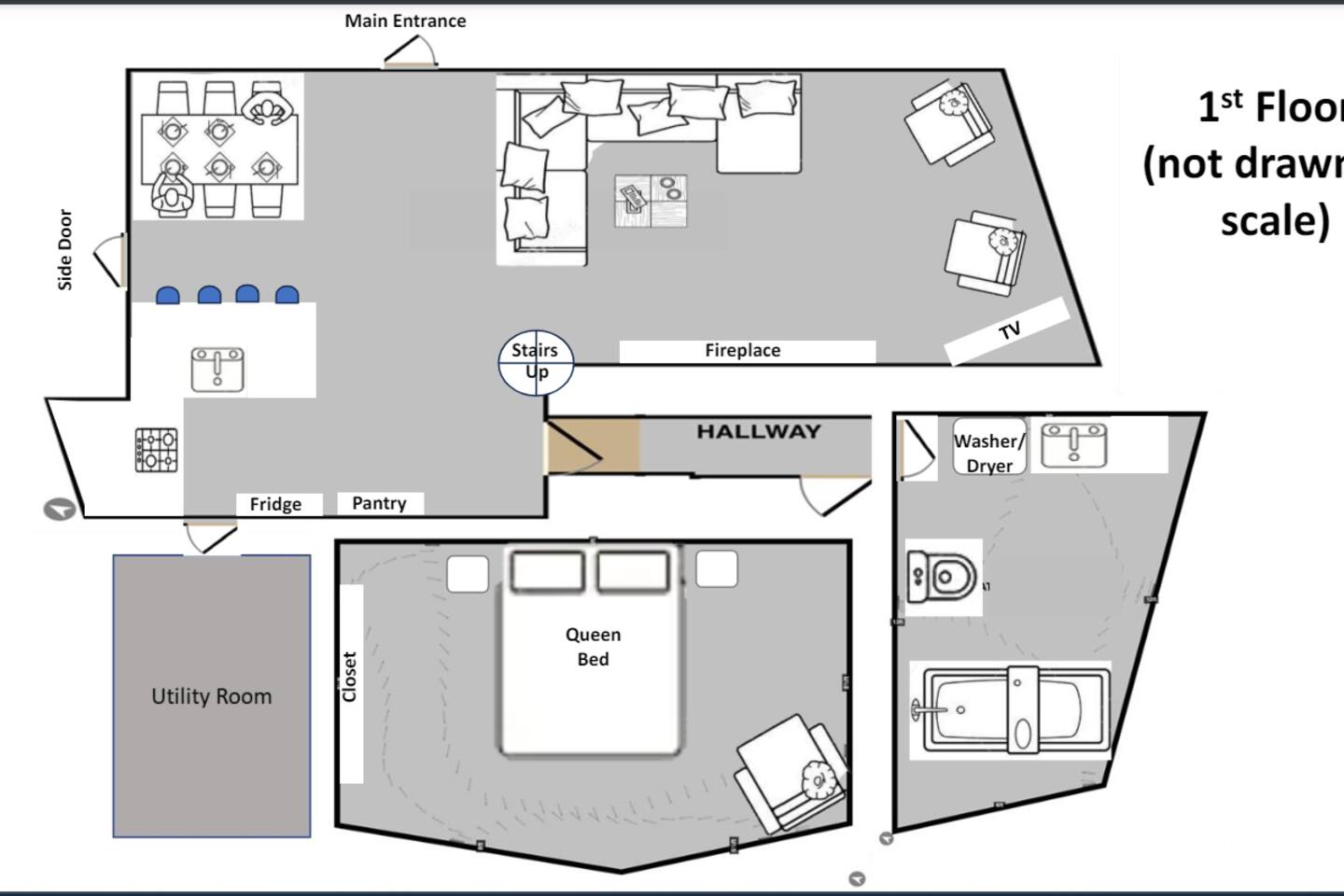 Bedrooms: The cottage has 1 bedroom and a loft area with 2 sleeping nooks. The cottage can accommodate between 6 and 8 guests comfortably. Bedroom 1 - Indulge in the spacious luxury of the master bedroom, featuring a queen bed with a new premium mattress. The modern design blends comfort and style seamlessly, offering a serene retreat that invites rest and relaxation. Sleeping Loft - Perfect for kids or adults, you'll find 4 single beds each with new premium mattresses. In addition, there is a large sectional couch in the living room which some guests choose to take advantage of as a great place to catch a nap and/or sleep a full night next to the fireplace. We also provide a portable crib for those traveling with young children. Bathroom: You'll find 1 sparkling clean and fully stocked bathroom with bright lighting, large mirrors, and hotel-grade towels in the cottage. The sunken tub is loved by guests and also doubles as a shower. The cottage is fully stocked with high-quality organic shampoo, conditioner, and body wash. Kitchen: Prepare a quick snack or a large feast in the fully stocked kitchen. Your kitchen features beautiful quartz countertops and modern appliances with everything you will need to cook magnificent dinners. We have both Keurig and drip coffee machines and provide Keurig coffee (including decaf) and hot cocoa for your enjoyment. The dining area is perfect for enjoying a meal with your group and guests. The indoor dining table has enough chairs for 6 guests and additional living room seating if needed. You'll find high-end dinnerware with place settings for 8. You'll find a full spice rack and all of the pots, pans, and other cooking utensils you'll need to make Thanksgiving dinner (or something less ambitious of course). The kitchen and dining room flow effortlessly into the spacious living room, with vaulted cathedral ceilings and large windows letting the natural light and scenery in. Whether you want to open up your laptop to plan adventures for the day, host a dinner party, or just want to take things easy, this open-concept living room gives you all the space you need. Living Room: Soaring vaulted ceilings with open beams and large windows allow the light to fill the room. A large stone fireplace that heats the space quickly and provides amazing ambiance night and day Large sectional couch that can easily accommodate your entire group Large 50" Smart TV with all major streaming services Oversized leather chairs from the Sundance The catalog provides a great spot by the fireplace for reading or relaxing. Historic Home: The cottage was originally built in 1968 by a rocket scientist (true story). We are the 3rd owners of the home. The natural rock fireplace is made out of slate stone that the original owner gathered from the Storm Mountain area of the canyon which wouldn't be legal to do today. When we remodeled, we considered removing it but opted to keep as much of the historic features of the home while ensuring that it is comfortable, up to date with modern appliances and features and safe. Outside Space: The cottage is situated on a half-acre of private property with old growth Engleman spruce trees covering the area. Lounge on the large deck, fire up the gas BBQ or enjoy smores by the campfire outside your front door. Hop up in one of the hammocks and enjoy a good book or a nap with the cool mountain breeze as your companion! There is ample parking for 2 cars year-round. In the summer, there is space for a 3rd additional car if needed. Key Amenities: ☆ 1 bedrooms and 1 sleeping loft; 1 Queen and 4 Single Beds ☆ Smart TV in the living room with major streaming services (Netflix, Amazon Prime, Disney+, Hulu, ESPN) ☆ 1 full bathroom ☆ 6 Person Indoor Dining Table ☆ Large Deck for Outdoor Dining ☆ Large, efficient, washer/dryer ☆ Beautiful Swiss Design Modeled After Chalets in Zermatt ☆ Easy and simple automatic, self-check-in process ☆ Room darkening blinds in all bedrooms Experience Solitude and Brighton in a way that you'll never forget! We look forward to hosting you!
