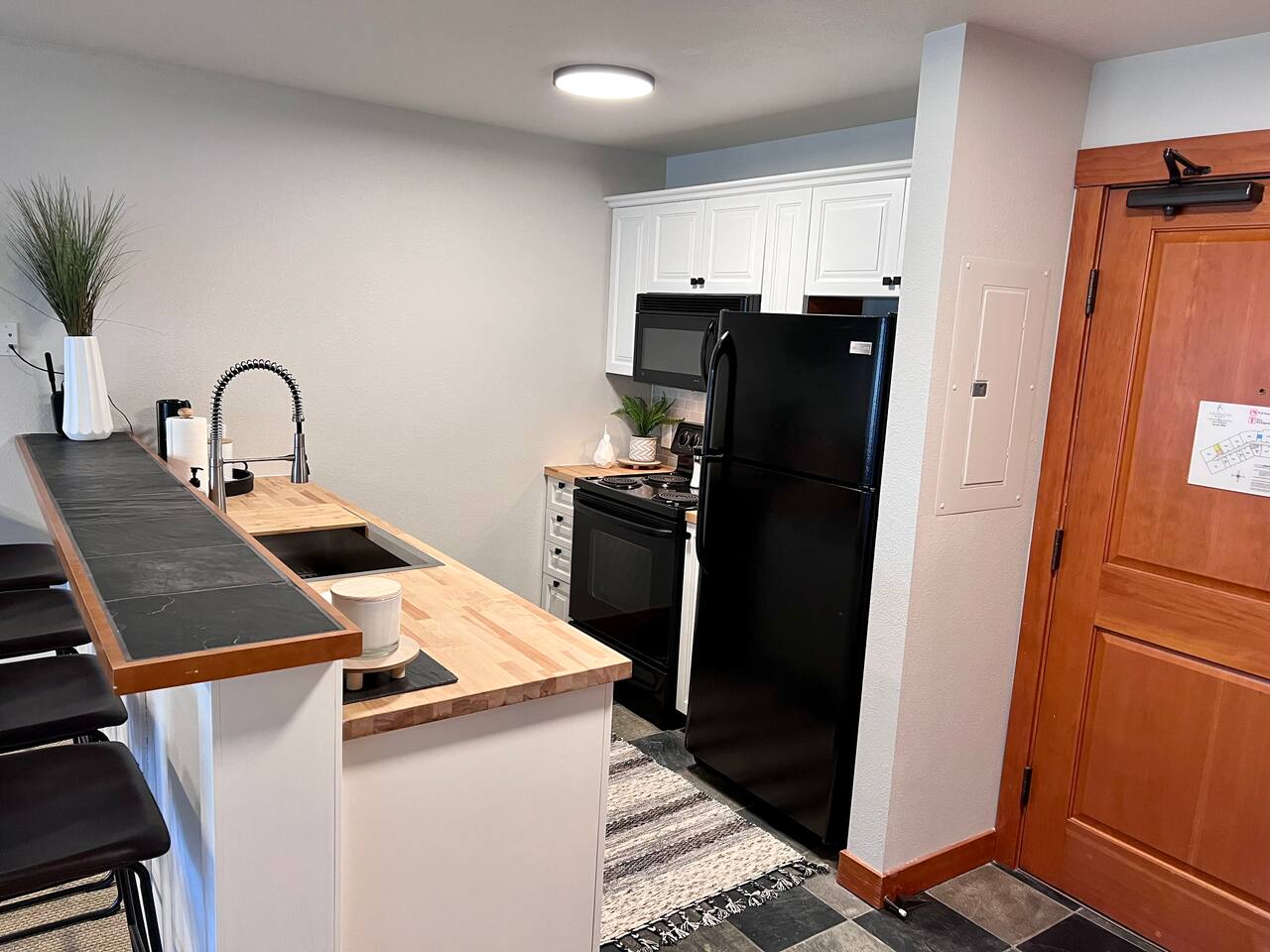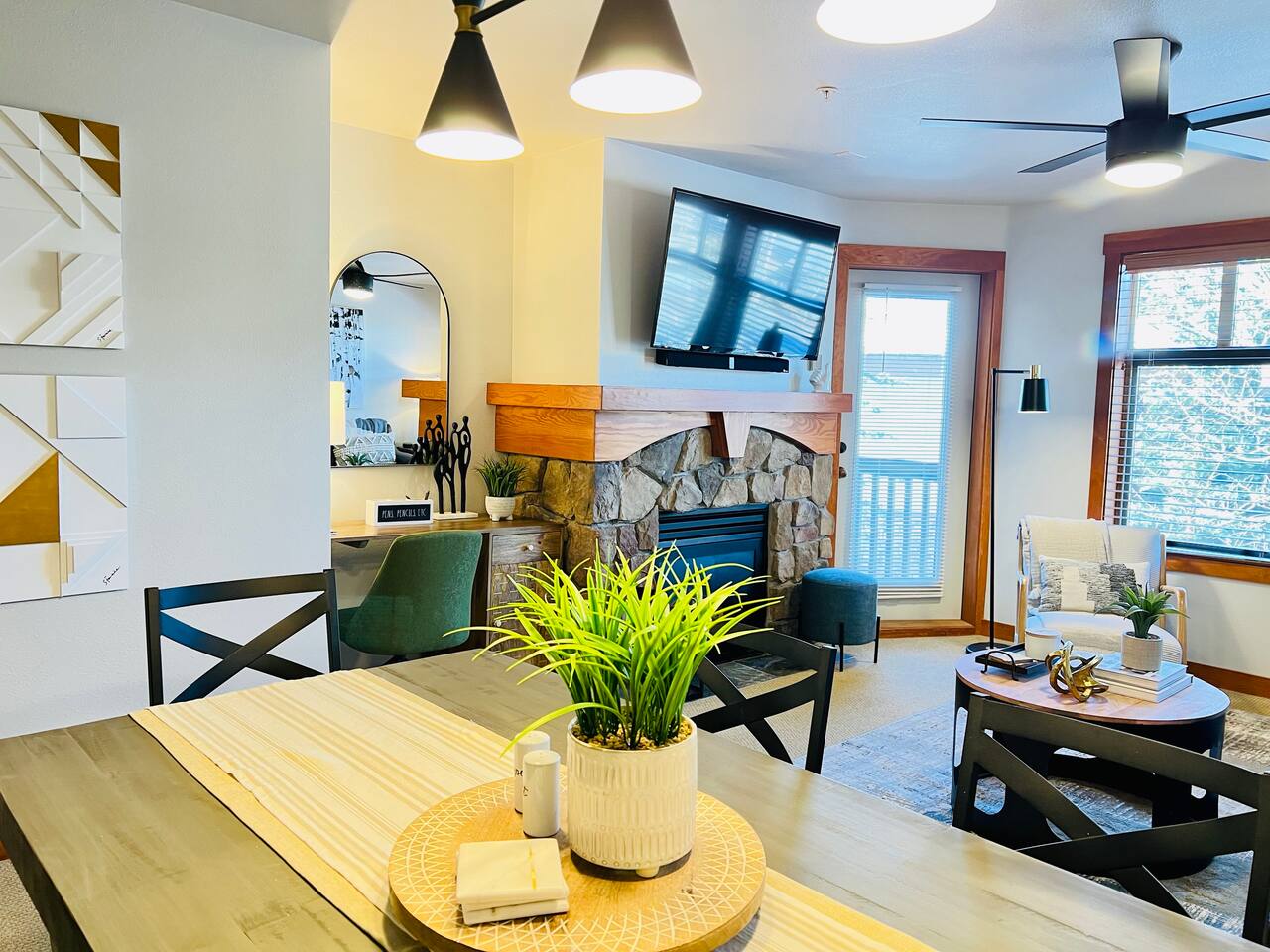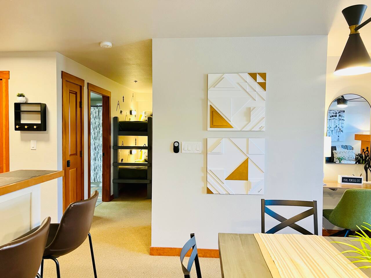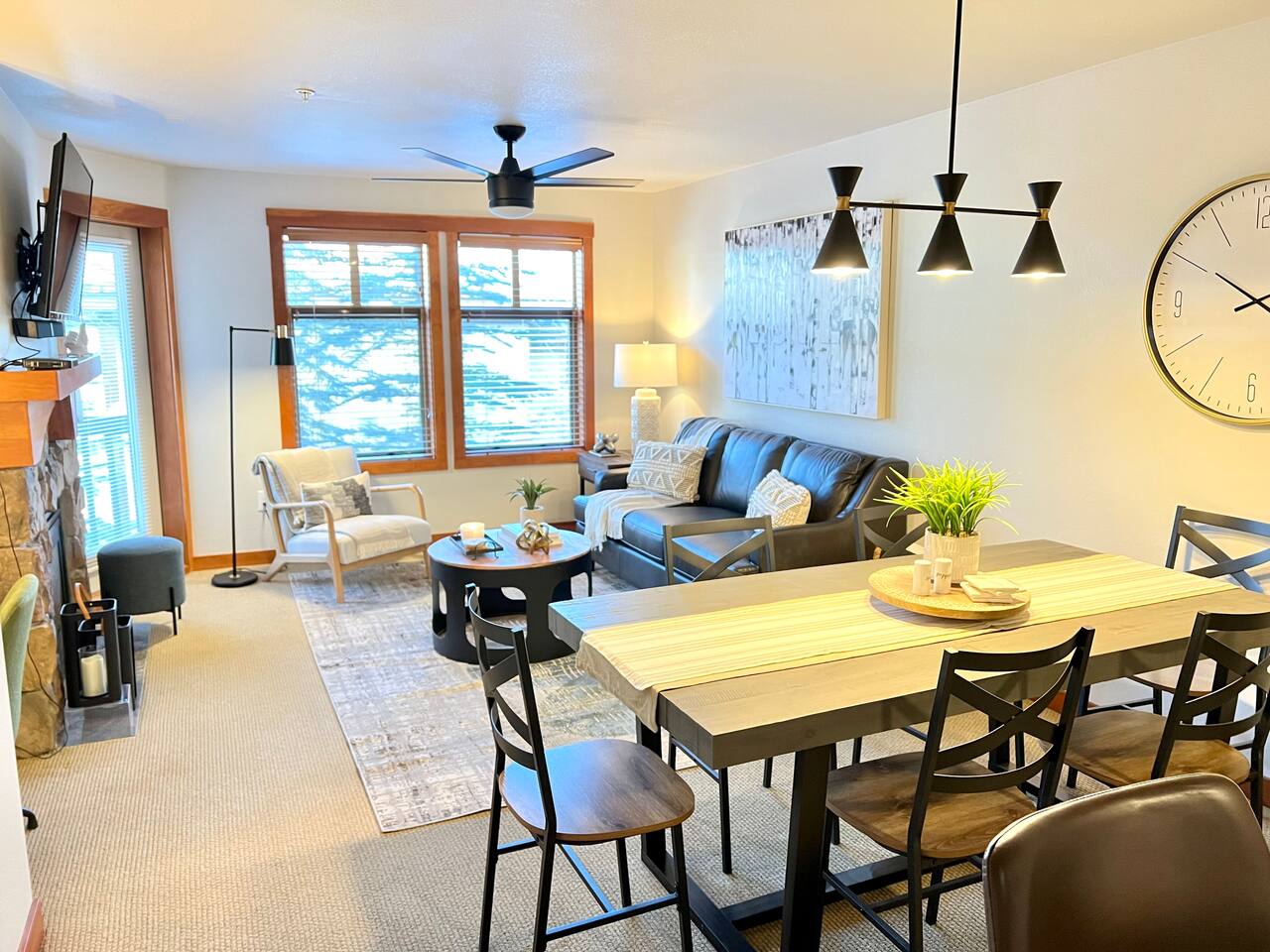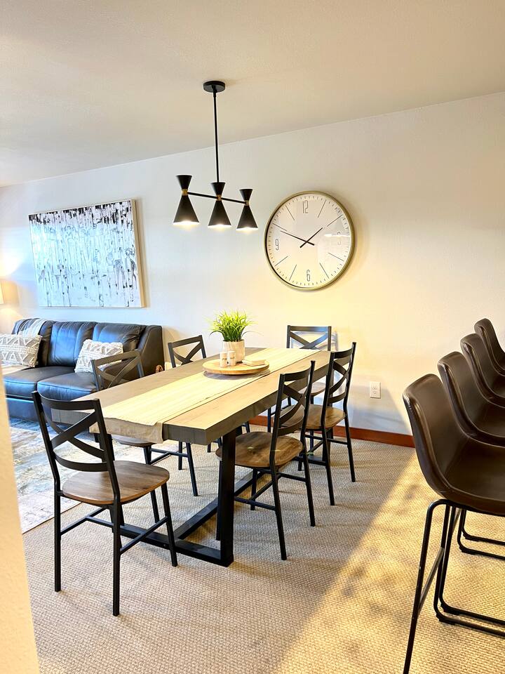 This private home boasts stunning views and is located in the heart of the village, just steps from the ski lift. With 2 bedrooms, it comfortably accommodates up to 6 guests. The layout features a King bed with a locking door and a den with four bunk beds, providing a total of 6 beds. We promise you’ll love it! Bedroom 1 - Enjoy the spacious luxury of the primary bedroom, featuring a King bed and locking door. The modern design perfectly blends comfort and style, offering a serene retreat that encourages relaxation after a day of adventure and unwinding in the hot tub. Bedroom 2 - This modern den/bedroom offers 4 bunk beds, perfectly blending comfort and fun. With custom bunk beds and modern mountain decor, it provides a cozy yet stylish escape. Bathroom- This home offers a clean and fully stocked bathroom featuring a large mirror, an abundance of regular and pool towels, and ample storage in the vanity for personal items. The spacious bathroom includes a shower/soaking tub and is supplied with hairdryer, shampoo, conditioner, and body wash to cater to your group’s needs. Kitchen, Dining, and Lounge- Whip up anything from a quick snack to an elaborate meal in the fully-equipped kitchen, where you'll find everything needed to prepare amazing dinners. The dining area is ideal for enjoying meals with your group, featuring seating for six at the dining table, along with four additional bar stools. Seamlessly connected to the spacious lounge, which showcases large windows that bathe the room in natural light, this open-concept living space offers ample room for various activities, whether you’re planning adventures or simply relaxing by the fireplace. Work Space- Effortlessly work remotely in the designated area equipped with high-speed internet and a desk with storage. Additionally, the amenity space at Club Solitude offers two workstations with computers available. Outdoor Space- Relax on the covered private balcony and take in the natural surroundings, or venture out to enjoy the numerous amenities available in the village, including multiple hot tubs, pools, a gym, a sauna, and more. You'll also have access to a large free laundry room on the 4th floor, covered heated parking, and secure ski storage. There’s truly no other place like this in the village or on the mountain! We promise you won’t be disappointed! Key amenities- ☆ 2 bedrooms; 1 king and 4 bunk beds. ☆ 1 bathroom ☆ Designated work space with desk & high speed internet ☆ Access to Pool + Hot Tub + Gym + Sauna + Game Room (Village Amenities) ☆ 6 Person + 10 Person Indoor Dining ☆ Games available for entertainment ☆ Large, efficient, washer/dryer ☆ Contemporary Mountain Design ☆ Large TV with Firestick & small bedroom TV with Direct TV ☆ Easy and simple automatic, self-check-in process ☆ Large Ceiling Fans ☆ Fireplace Experience the perfect ski getaway or summer adventures, where every moment is rich with warmth, excitement, and cherished memories. Ski-in/Ski-out Access- Enjoy effortless access to the slopes of Solitude Resort and discover the thrilling trails of Brighton Ski Resort right at your doorstep. Convenient Amenities- Enjoy complimentary covered/heated parking and secure ski storage, along with access to multiple hot tubs, heated pools, a full gym, sauna, game room, and more for endless entertainment. On-Site Amenities- Enjoy the convenience of on-site dining options, a welcoming pub, a relaxing spa, and a fully stocked liquor store to cater to all your needs Nearby Attractions- Engage yourself in the beauty of nature, just minutes from Brighton Resort and Nordic Center, and only 40 minutes from Salt Lake City International Airport and the lively dining and shopping options of downtown Salt Lake City. Local Excursions- Discover the area's charm within walking distance, featuring weekly summer concerts, energizing yoga sessions, picturesque hiking trails, lift-accessed mountain biking, and a variety of restaurants offering delightful cuisine. Your mountain retreat is waiting for you! Other things to note- We'll provide you with a detailed vacation planning guide, FAQ doc and with a calendar of events before you check in. If you are looking for a quiet, private ski vacation with the exceptional Deer Valley service, add Solitude to your must-ski list.