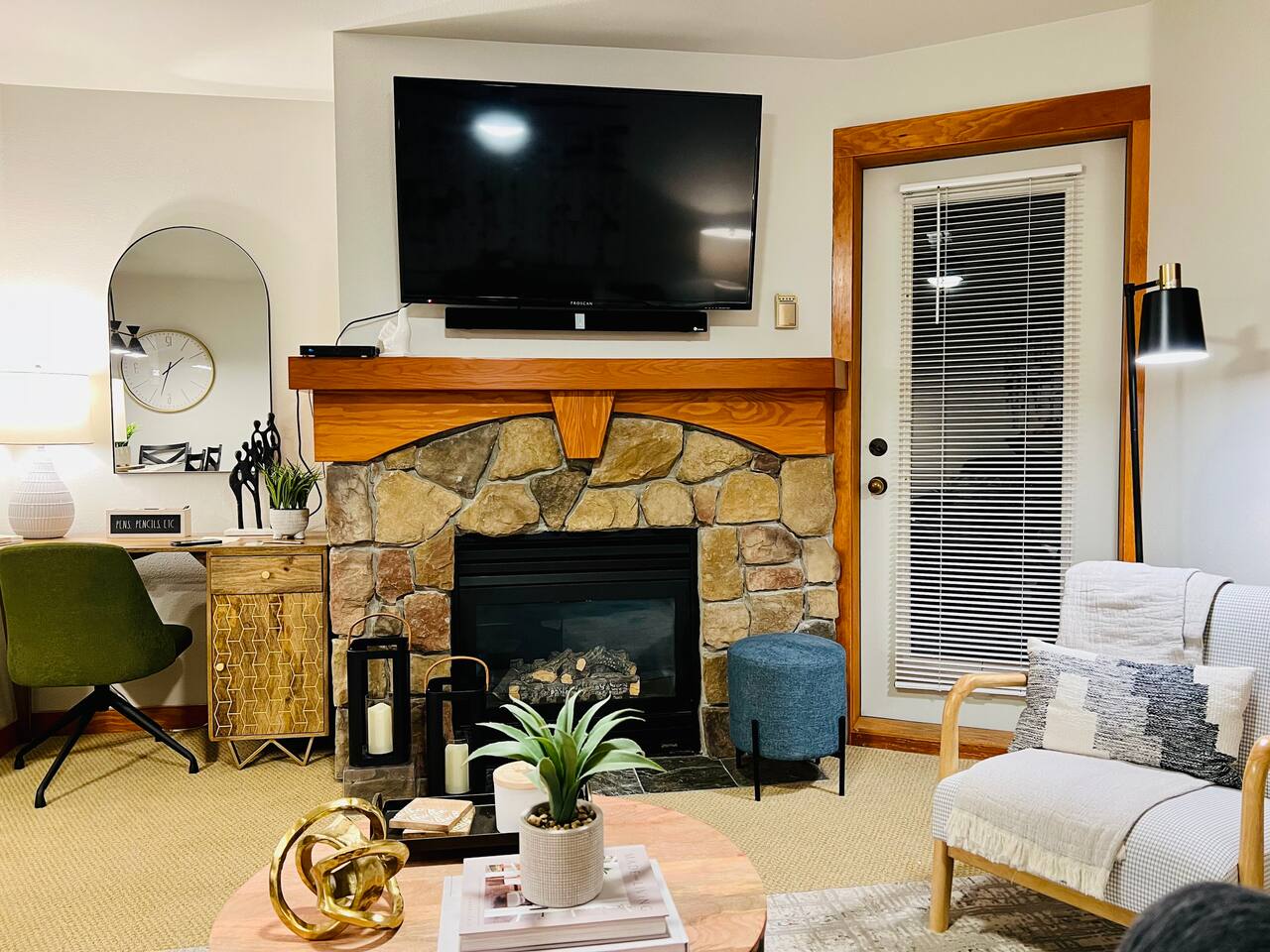 - Indoor fireplace
